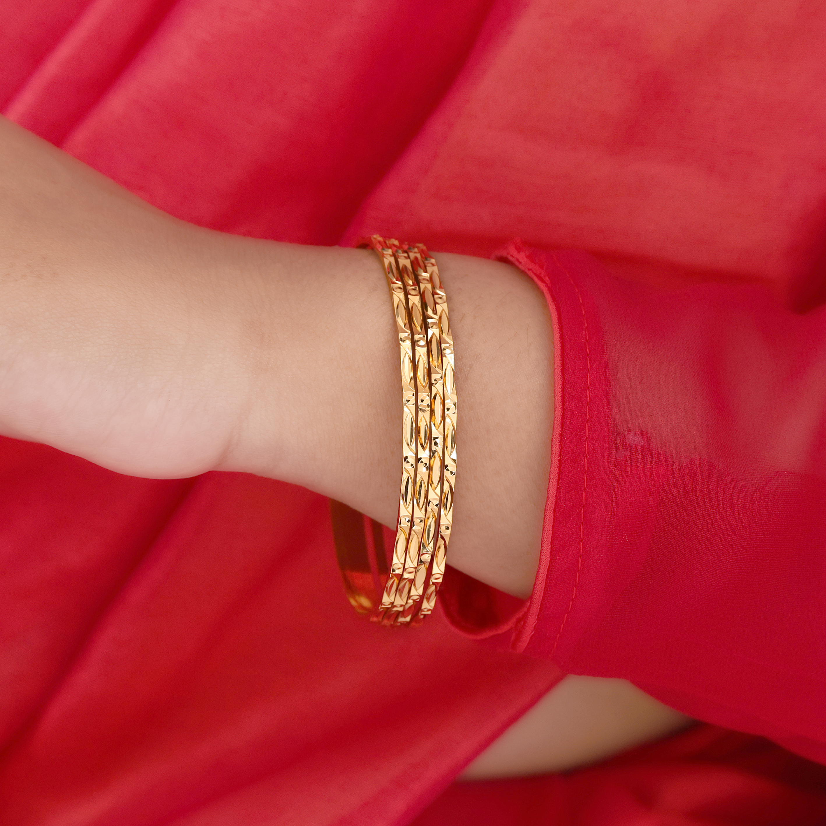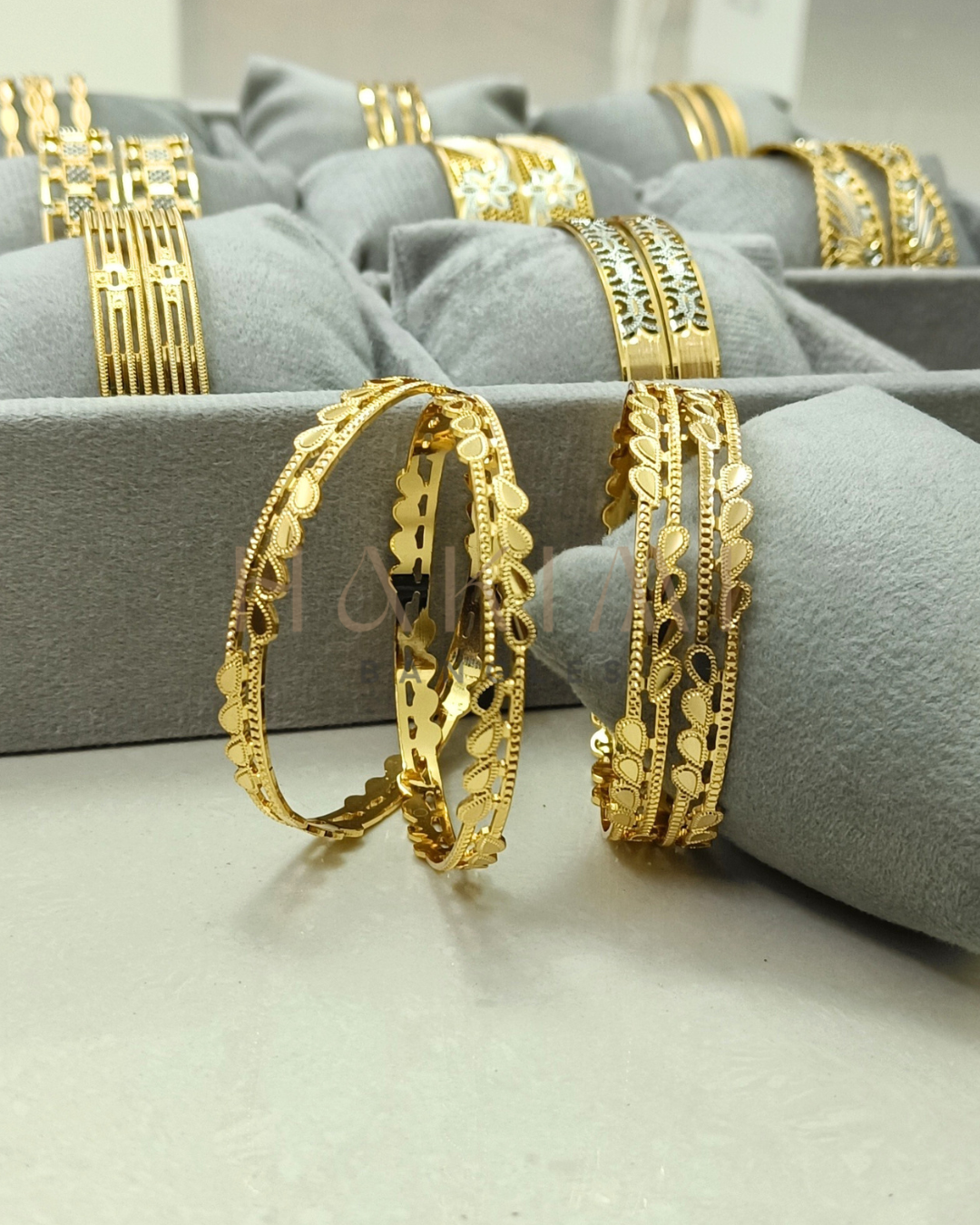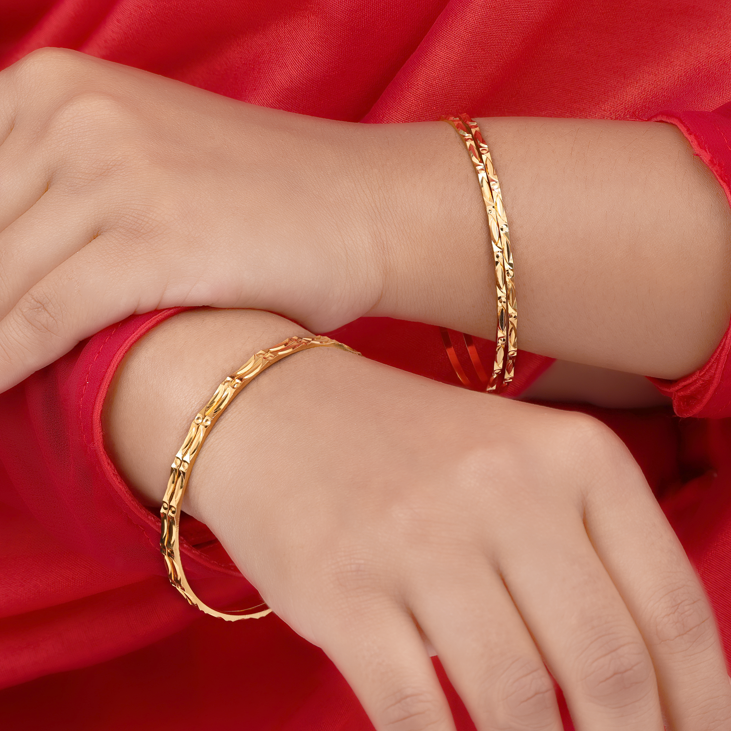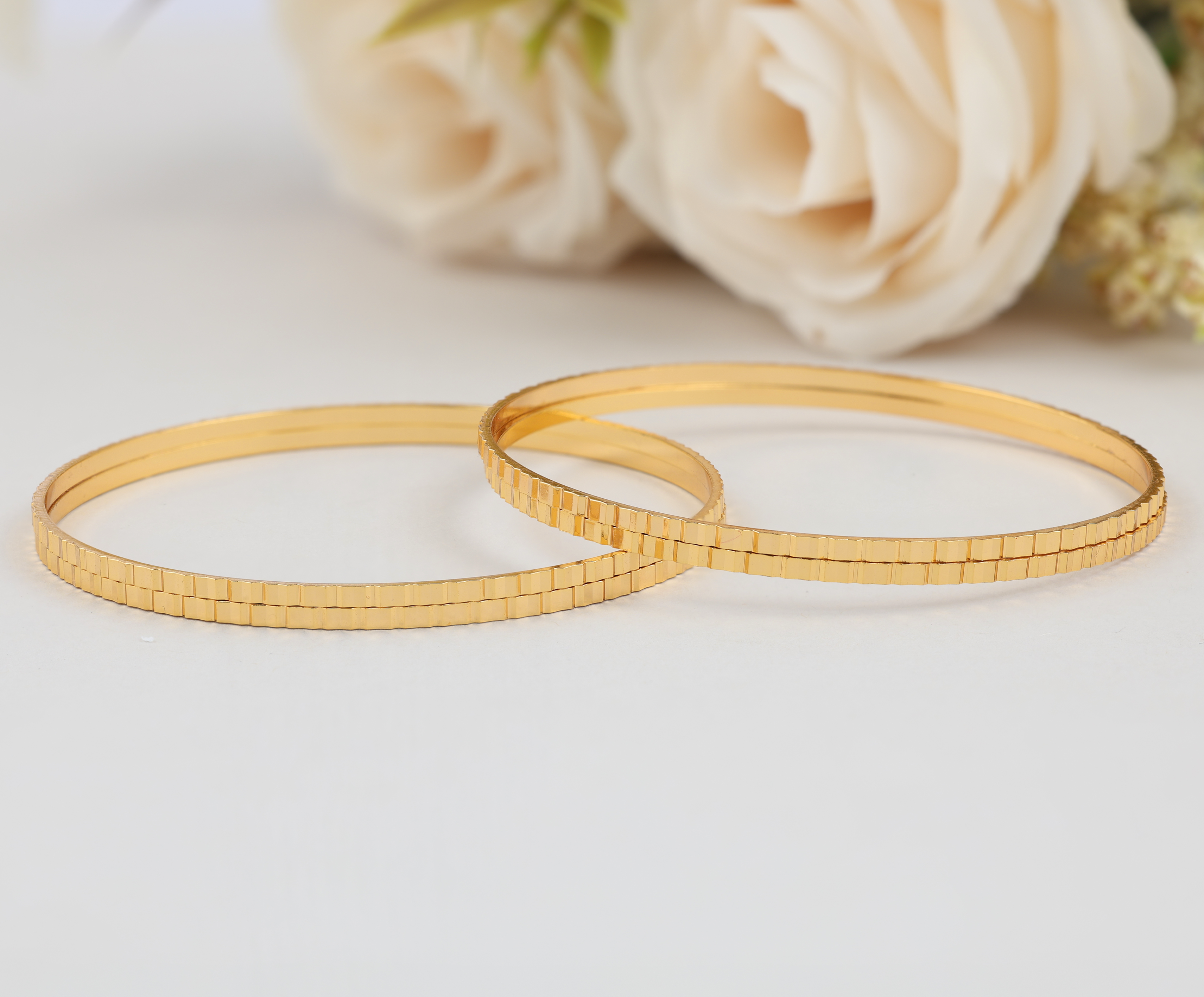 Experience the rich look of real gold with our specialized 100mg gold-plated bangles. The lightweight design ensures ultimate comfort for all-day and daily wear.