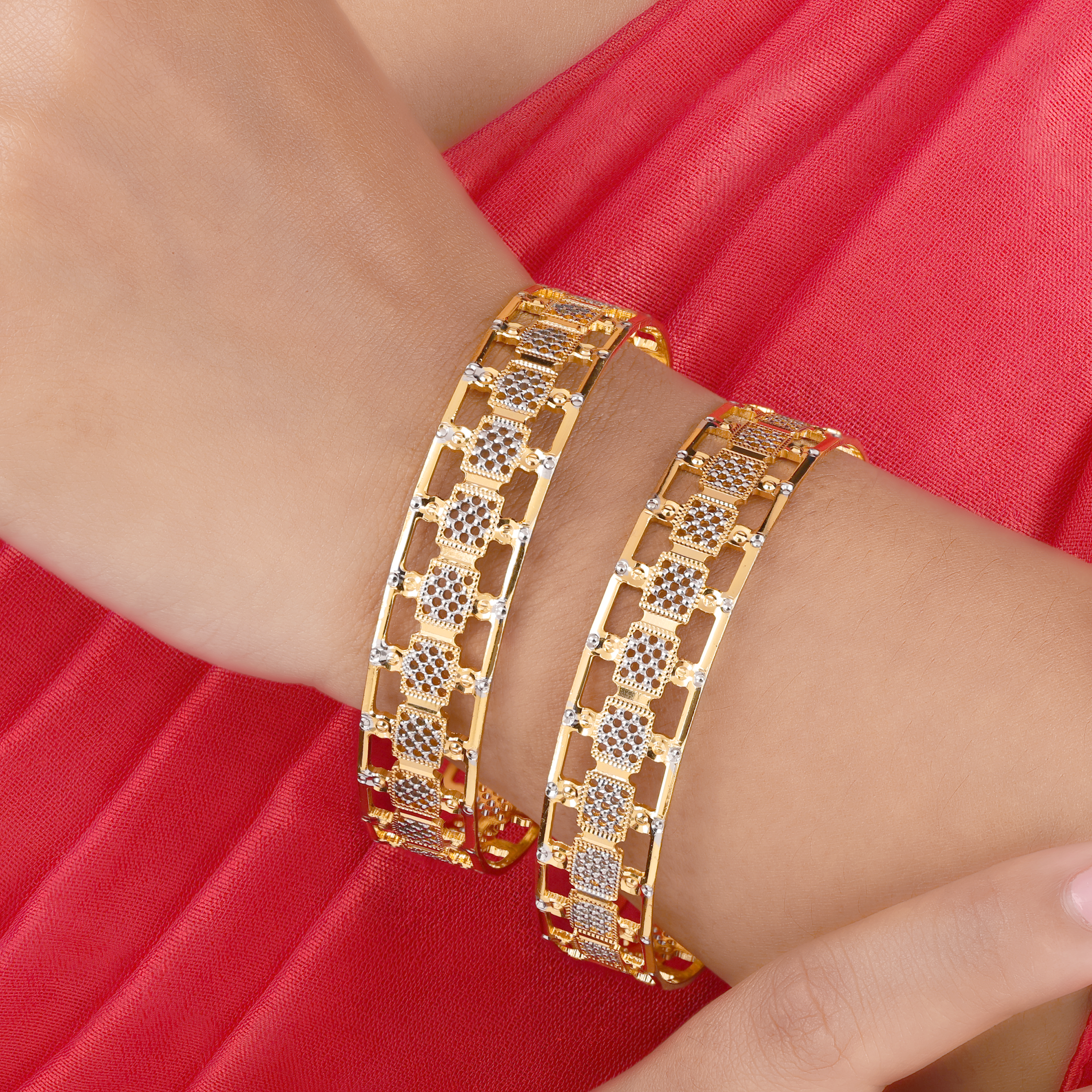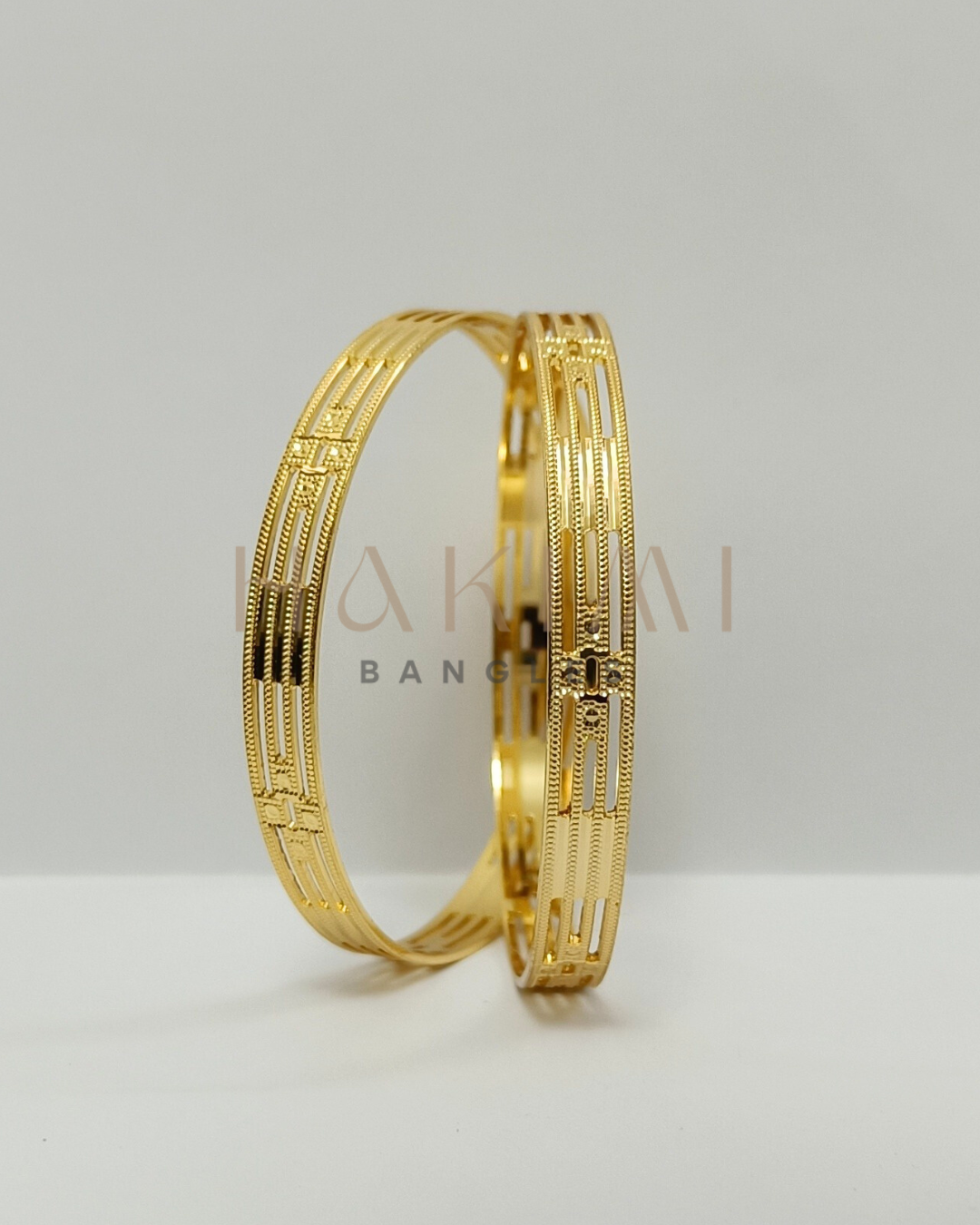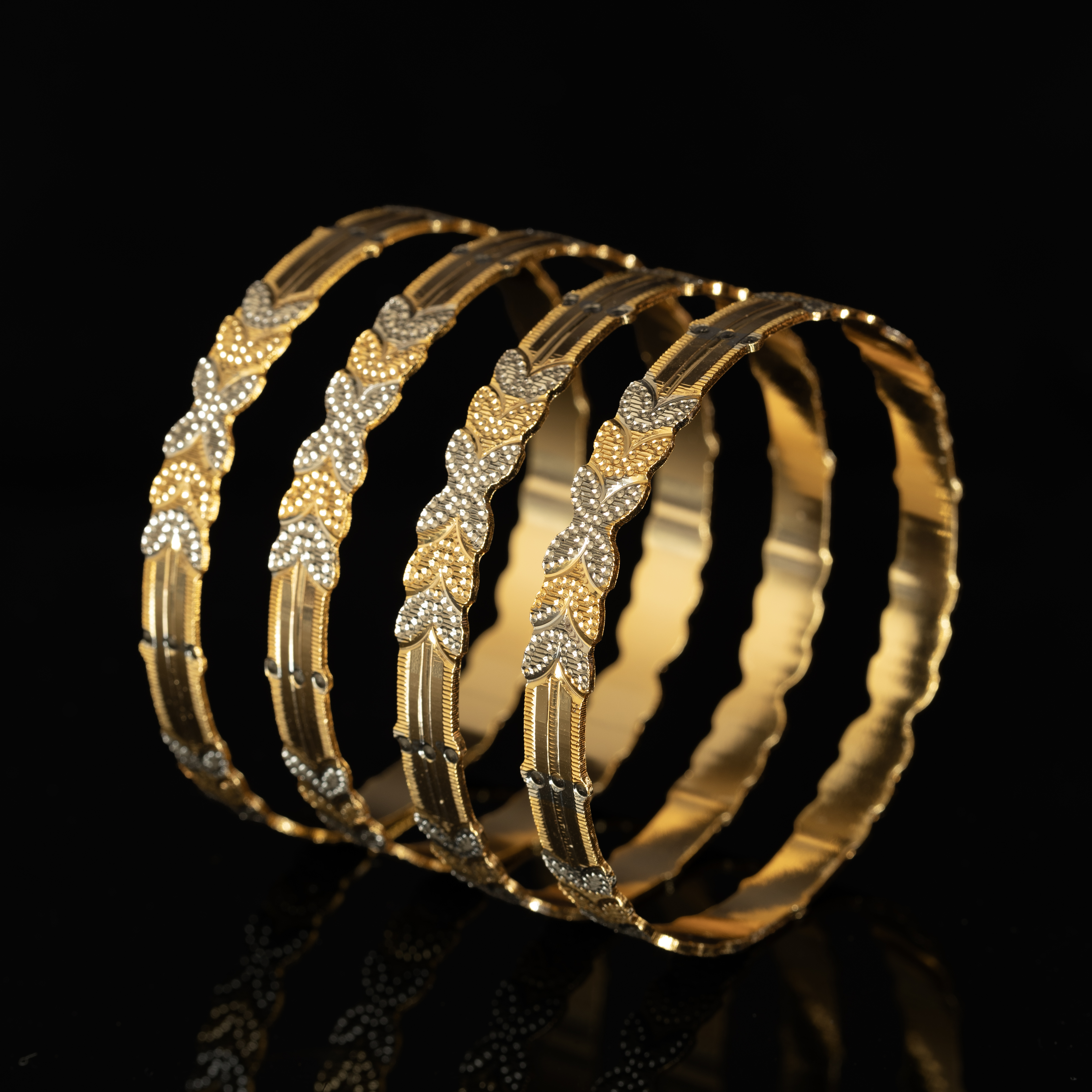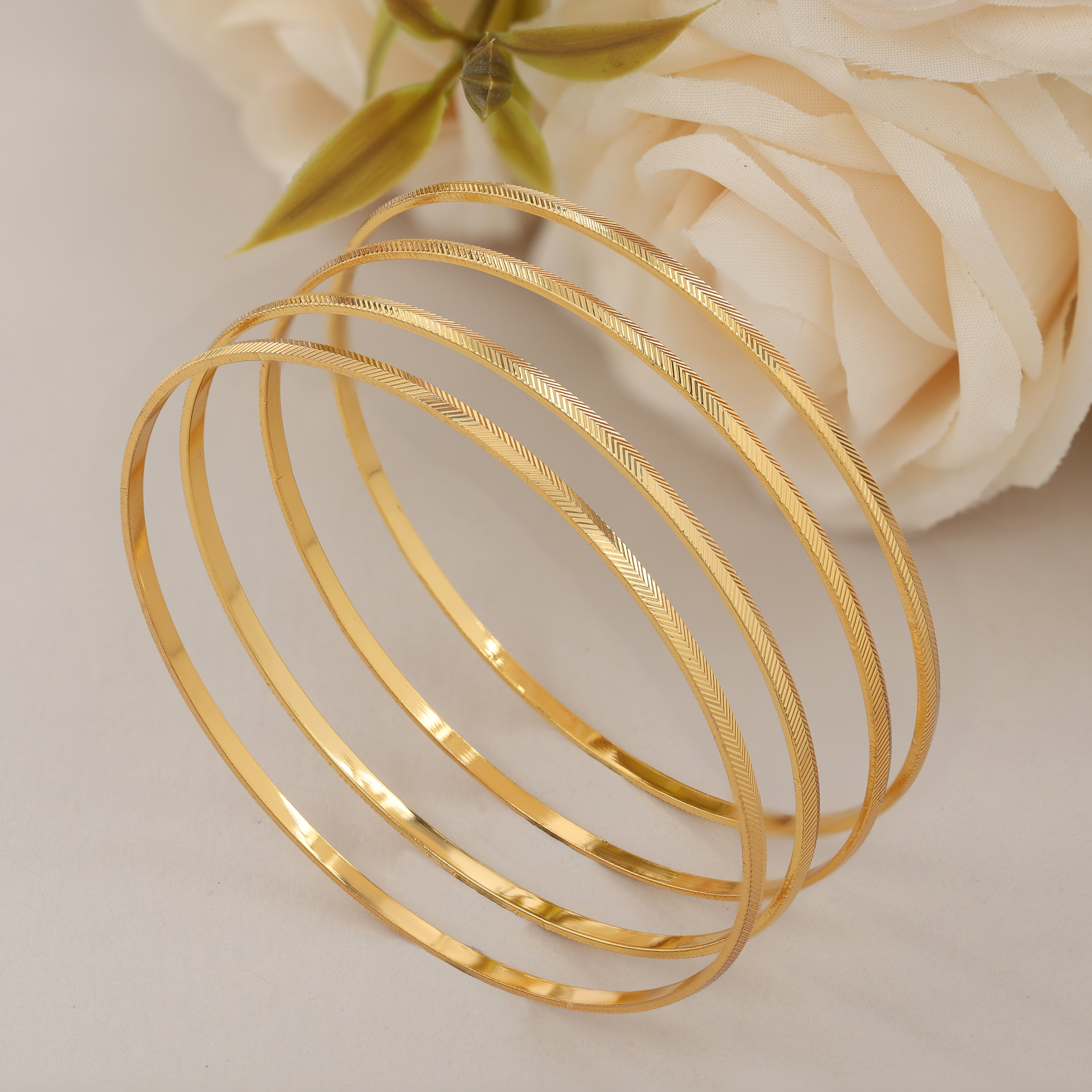 Experience the rich look of real gold with our specialized 100mg gold-plated bangles. The lightweight design ensures ultimate comfort for all-day and daily wear.